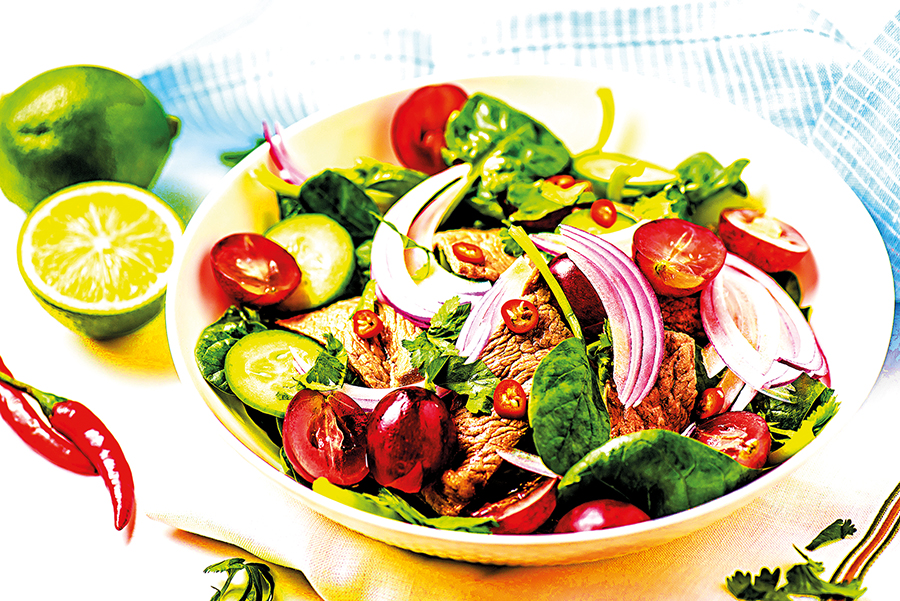 Salát podávejte ozdobený nakrájenou chilli papričkou.
