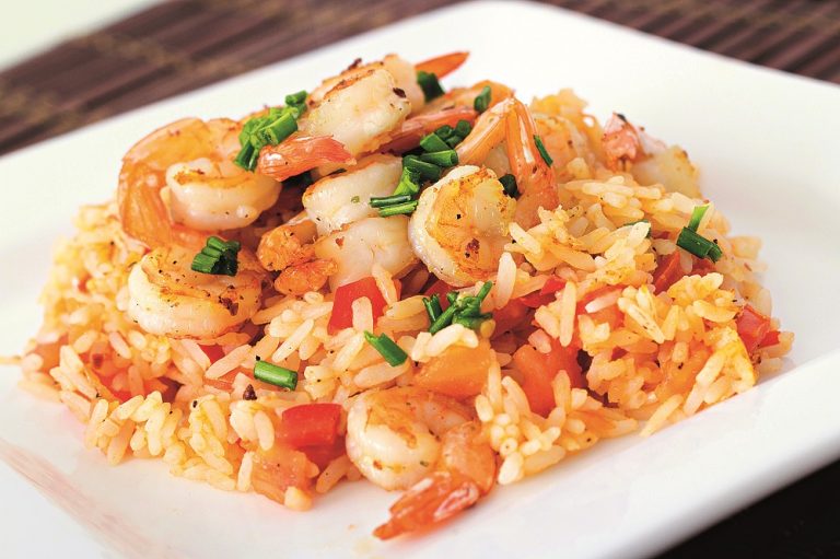 Suroviny: 200 g dlouhozrnné rýže sůl 175 g mraženého hrášku 2 lžíce olivového oleje 1 cibule 3 plátky slaniny 1 lžíce červené kari pasty 250 g předvařených krevet 1 vejce Postup: Rýži vaříme 10 minut ve vroucí osolené vodě. Na poslední tři minuty k ní vsypeme hrášek. Scedíme. Rozpálíme v hluboké pánvi trošku oleje, přidáme […]