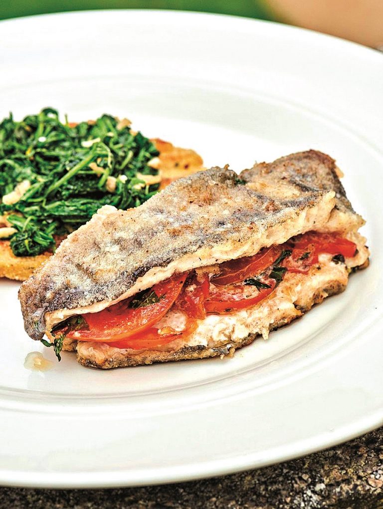 Suroviny: 4 menší pstruzi citronová šťáva 100 g hrubé mouky máslo na opečení 2 rajčata snítka bazalky mletý pepř a sůl 2 lžíce olivového oleje Česneková rukola: 200 g rukoly 4 stroužky česneku mletý pepř a sůl máslo na opečení Postup: Rajčata nakrájíme na půl centimetru silné plátky a smícháme s nasekanou bazalkou, mletým pepřem, […]