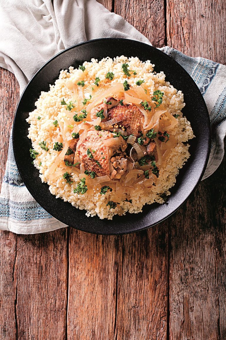 Suroviny: 4-6 kusů kuřecích stehen 2 lžičky kurkumy 1 lžíce koření Garam Masala 2 lžíce slunečnicového oleje 2 cibule na jemno 3 stroužky česneku 500 ml kuřecího vývaru 1 citron 1 velká hrst oliv 250 g kuskusu 1 malý svazek petržele Postup: Kurkumu smícháme s kořením Garam Masala a špetkou soli. Ve směsi maso obalíme. […]