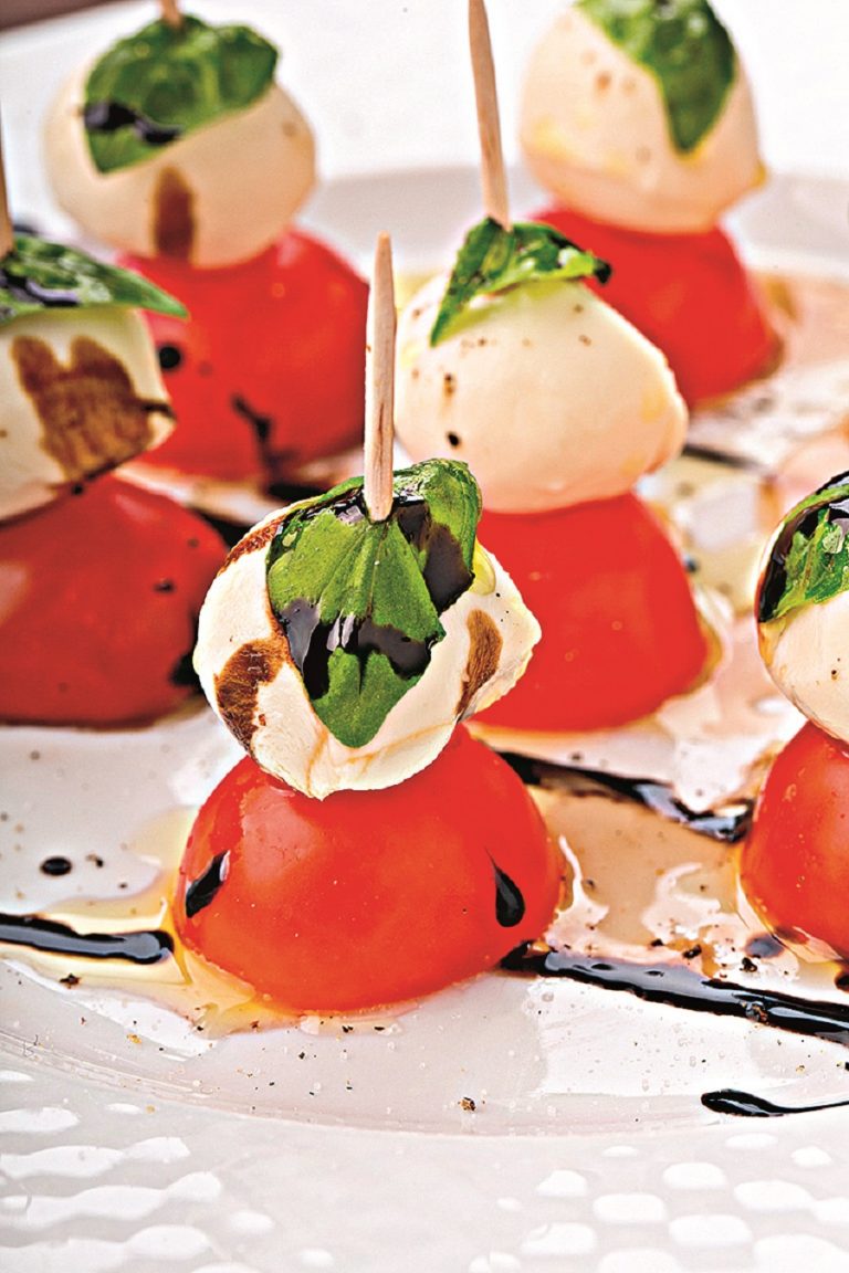 Suroviny: 20 kuliček mini mozzarelly 20 cherry rajčat 20 lístků bazalky párátka balzamikový ocet Postup: Klasika, kterou miluje snad každý z nás. Na každé párátko napíchneme nejprve kuličku mozzarelly, poté půlku cherry rajčátka a navrch dáme plátek bazalky. Kdo má rád, může nakonec jednohubky na talíři pokapat trochou balzamikového octa nebo olivového oleje..