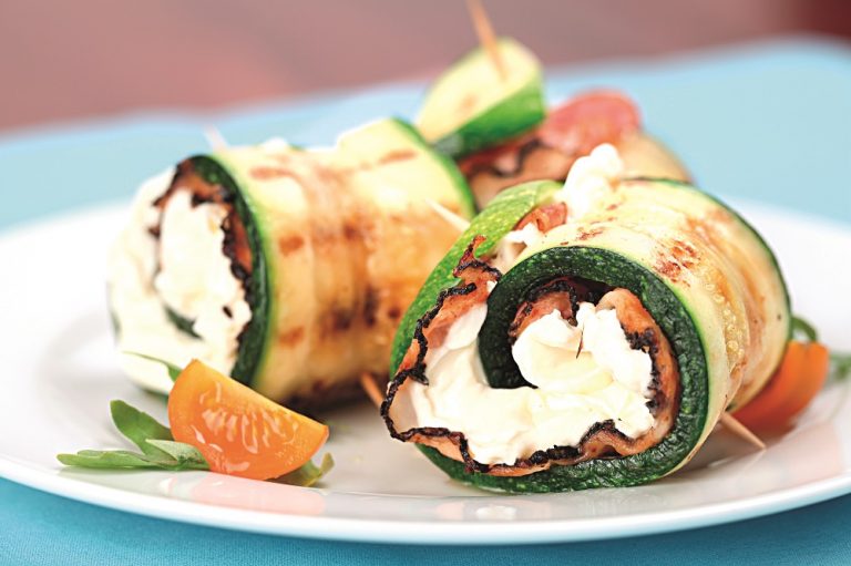 Suroviny: 1 menší cuketa olivový olej, sůl 80 g krémového sýra ½ stroužku česneku 1 lžička provensálského koření 50 g sušené šunky svazek pažitky a lístky bazalky Postup: Cuketu omyjeme a nakrájíme podélně na dlouhé tenké plátky. Plátky osolíme a necháme zhruba 15 minut odpočívat, aby se vypotily. Plátky zlehka ogrilujeme nebo opečeme na pánvi […]