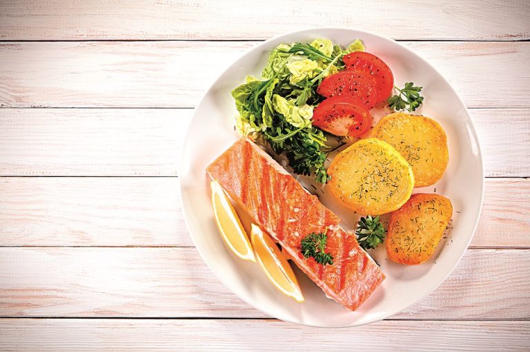 Suroviny: 800 g brambor oloupaných brambor na plátky 120 g crème fraîche nebo 30 % husté zakysané smetany mořská sůl a mletý pepř 2 lžíce olivového oleje 4 x 200 g filet z lososa bez kůže 90 g hotového bazalkového pesta 50 g rukoly a koprových lístků Postup: Troubu předehřejeme na 250°C. Brambory a crème […]