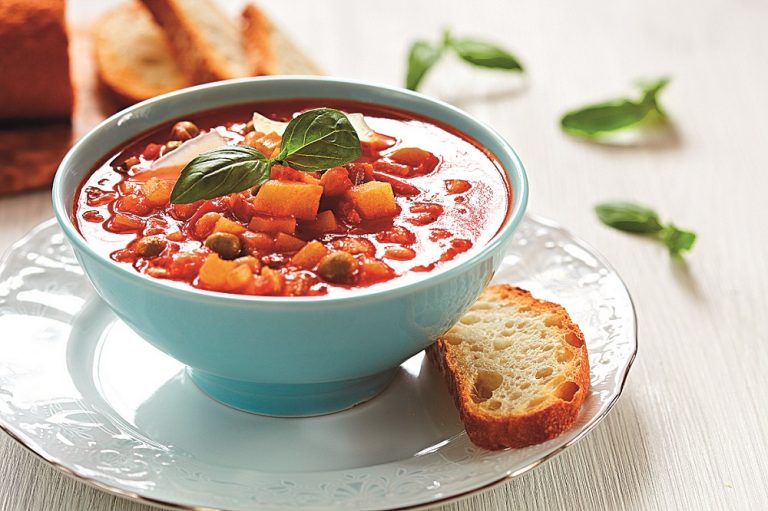 Suroviny: 2 lžíce olivového oleje 1 pokrájená cibule a stroužek česneku 2 pokrájené stonky celeru 1 pokrájená mrkev a cuketa a porek 400 g konzervovaných rajčat 1 l kuřecího nebo zeleninového vývaru ½ pokrájené malé hlávky zelí 1 bobkový list 100 g konzervovaných fazolí 8 malých kapustiček 1 lžíce nasekané petrželky sůl a pepř Postup: […]
