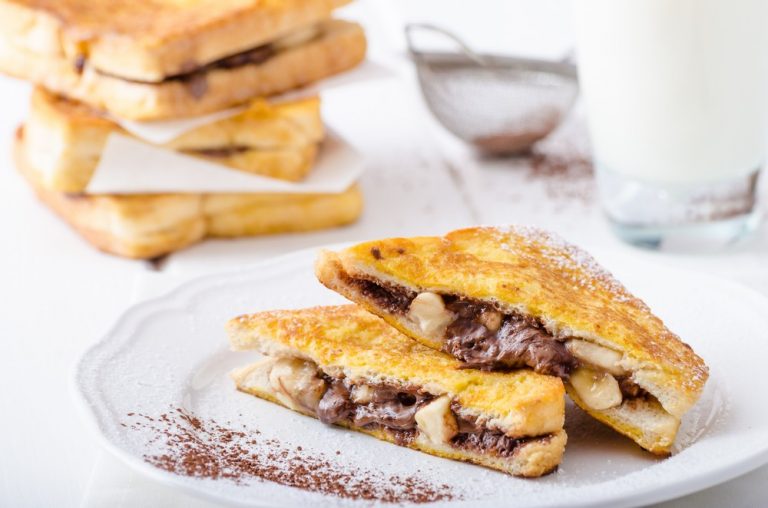 Tyto sladké toustíky s čokoládou jsou perfektní alternativou palačinek ke snídani. Suroviny na 2 porce – 4 plátky toustového chleba – 1 banán – 50 g mléčné čokolády – 50 g hořké čokolády – máslo – kakao na posypání Postup 1. Banán oloupejte a lehce rozmačkejte vidličkou. Čokoládu rozlámejte na dílky. 2. Spodní dno sendvičovače […]