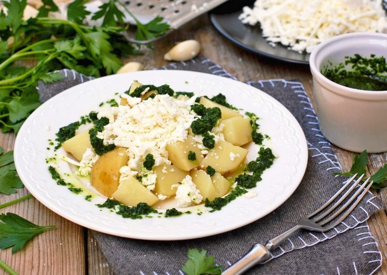 Vařené brambory s tvarohem, hojně posypané petrželkou, jsou výborným a lehkým jídlem. Suroviny na 4 porce – 1 kg nových brambor – 200 g tvrdého tvarohu – 80 g másla – 1 stroužek česneku – sůl – kmín – listová petrželka – libeček Postup 1. Nové brambory, čím menší, tím lepší, oškrábejte a uvařte v […]