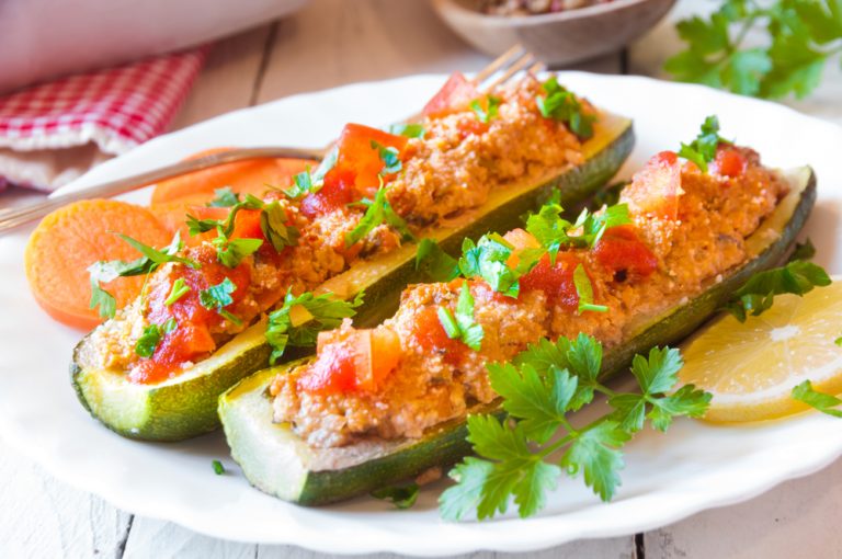 Pečené plněné cukety jsou skvělým a jednoduchým receptem pro letní dny. Podávat je můžete k obědu i k večeři. Suroviny na 2 porce – 2 větší mladé cukety – 350 g mletého masa – 1 šalotka – sušený česnek – sůl, pepř – 1 lžíce dijonské hořčice – 40 g strouhaného parmezánu – olivový olej – cherry […]