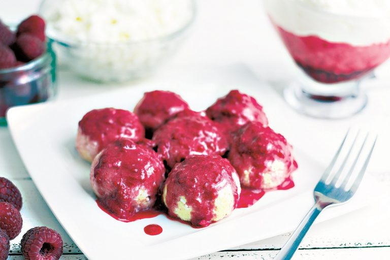 Snadné a přesto vynikající tvarohové knedlíčky s ovocným přelivem. Suroviny na 4 porce Na těsto – 500 g měkkého tvarohu – maliny – 200 g hladké mouky – 1 vejce – 3 lžíce másla – špetka soli Na omáčku – 300 g malin – 2 lžíce vody – 250 ml šlehačky – 60 g cukru […]