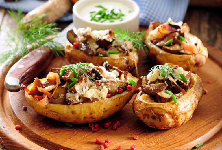 Další lákavá varianta na úpravu pečených brambor, tentokrát s houbami a fetou. Suroviny na 4 porce – 4 velké brambory – 50 g másla – 200 g lesních hub – 2 jarní cibulky – kuličky barevného pepře – sůl – 100 g sýru feta – olej Postup 1. Brambory vydrhněte a potřete olejem. Na několika […]