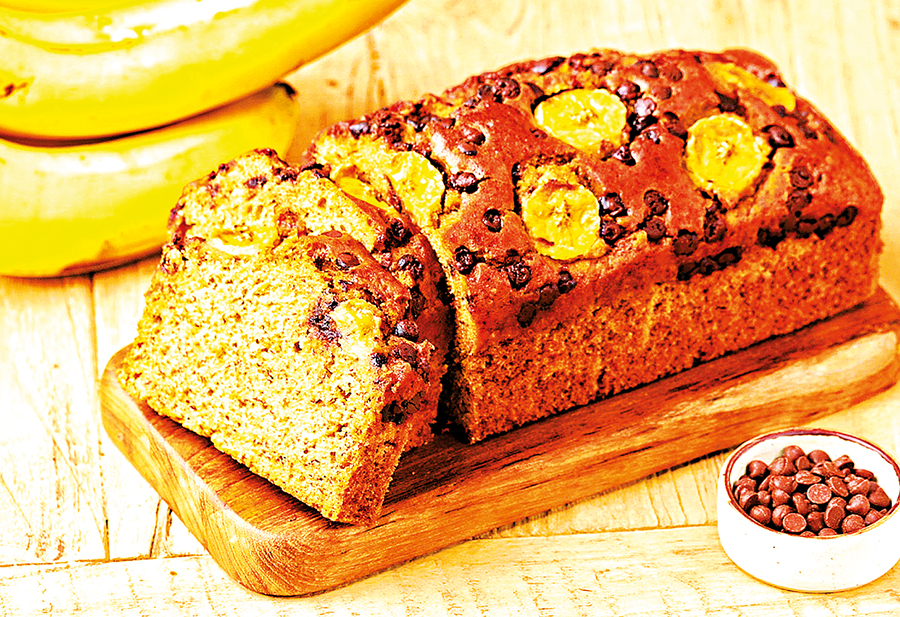 Těsto nalijte do formy, povrch můžete posypat zbylou čokoládou nebo ozdobit plátky banánu.