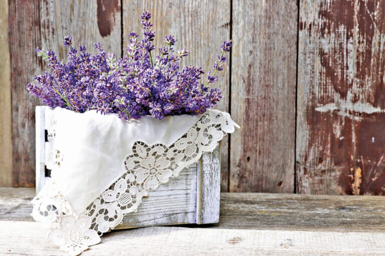 Košíček nebo bedýnka, kousek látky s krajkou a několik svazků levandile – dokonalé zátiší je na světě.