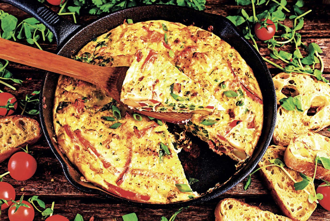 Pokud máte troubu, můžete pánev vložit dovnitř a omeletu zapéct, aby byla pěkně nadýchaná. Podávejte teplé s čerstvým chlebem, salátem nebo kyselou okurkou. Skvělý trik je přidat sýr, který se krásně rozteče.