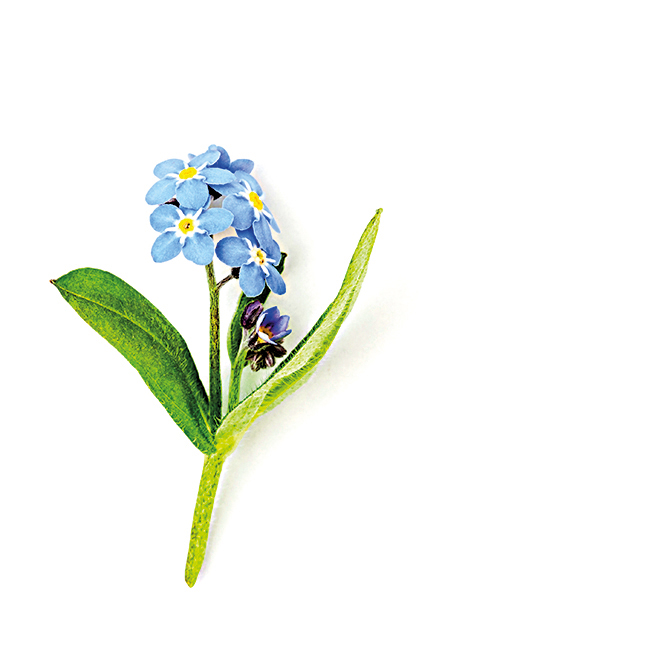 Symbol věčné lásky, na kterou se nikdy nezapomíná. Bleděmodrá barva květů značí nebe, moře a nekonečnost. Pomněnky jsou častým motivem na prvních náušnicích pro děvčátka a bývají i drobnou ozdobou svatební kytice. Jméno pomněnka zní jako „nezapomeň na mě“. Během meditace usnadňují i „cestu do vzpomínek“.