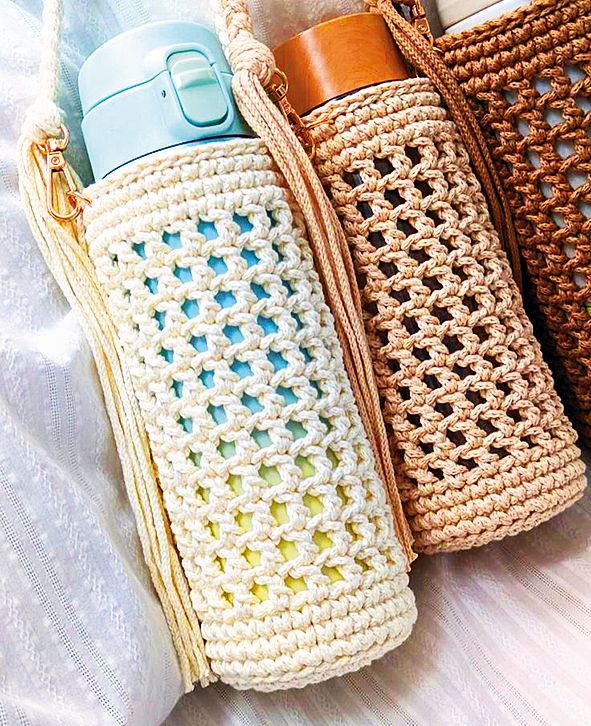 – Háčkované a pletené obaly na lahve či hrnečky jsou velice populární.