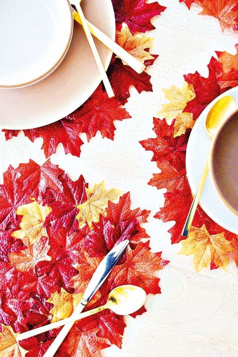 Vytvořte si tato stylová prostírání a dodejte svému jídelnímu stolu nádech barevného podzimu. Nasbírané listy namočte asi na tři dny do směsi glycerinu a vody, díky tomu vydrží dlouho čerstvé, a poté je dobře osušte.