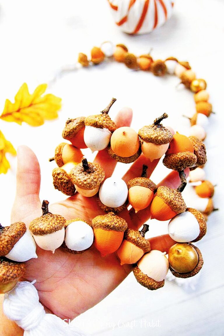 Pokud ráda chodíte na procházky do přírody, nasbírejte si sáček žaludů a vytvořte z nich barevný řetěz. Jeho výroba je hotová raz dva a výsledek vás ohromí! Žaludy nejprve namočte na několik hodin do vody se saponátem, omyjte je a osušte.