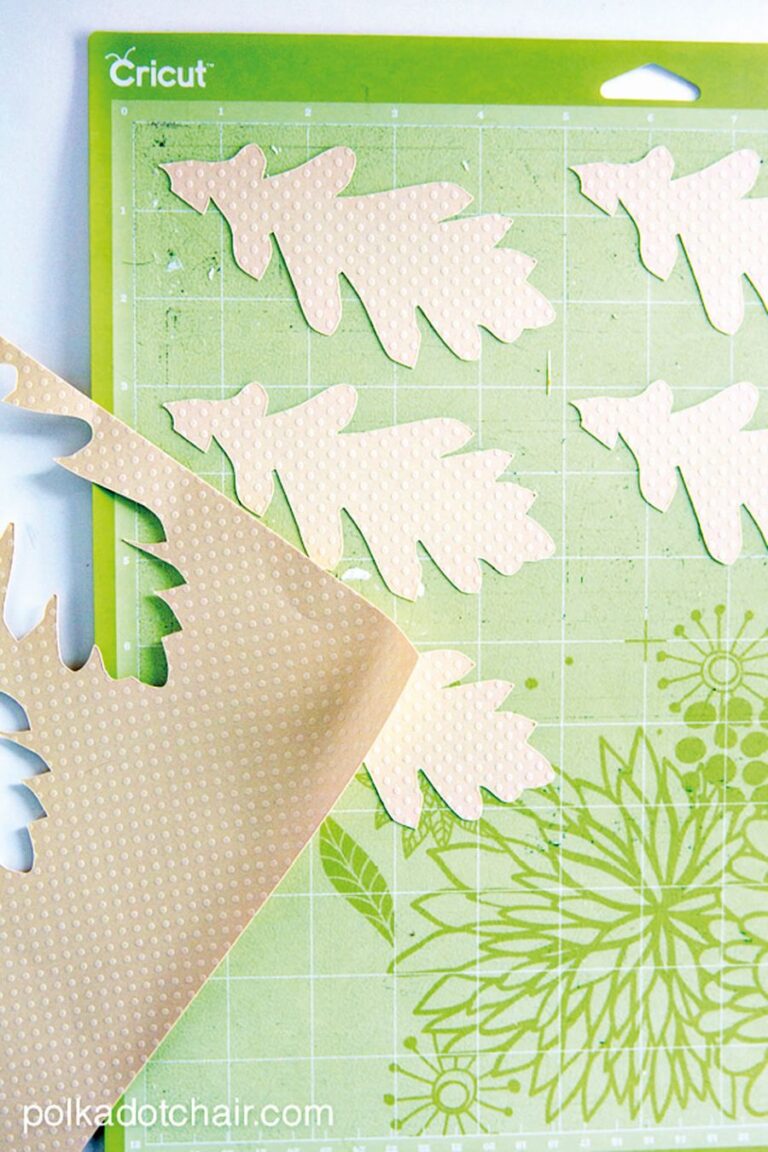 3. Na papírový základ nalepte největší listy, pak pokračujte těmi menšími. Ujistěte se, že papírový základ věnce je zcela zakrytý a nikde neprosvítá. Pro plastický efekt můžete některé listy přehnout.