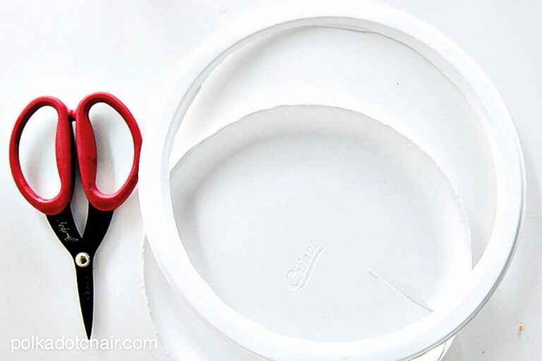 2. Papírové listy si rozdělte podle barev a pusťte se do přípravy základu na věnec. Z papírového tácku vystřihněte kruh o tloušťce asi 3 cm. Jeho okraje zarovnejte a natřete ho barvou, aby na hotovém věnci neprosvítal bílý podklad.