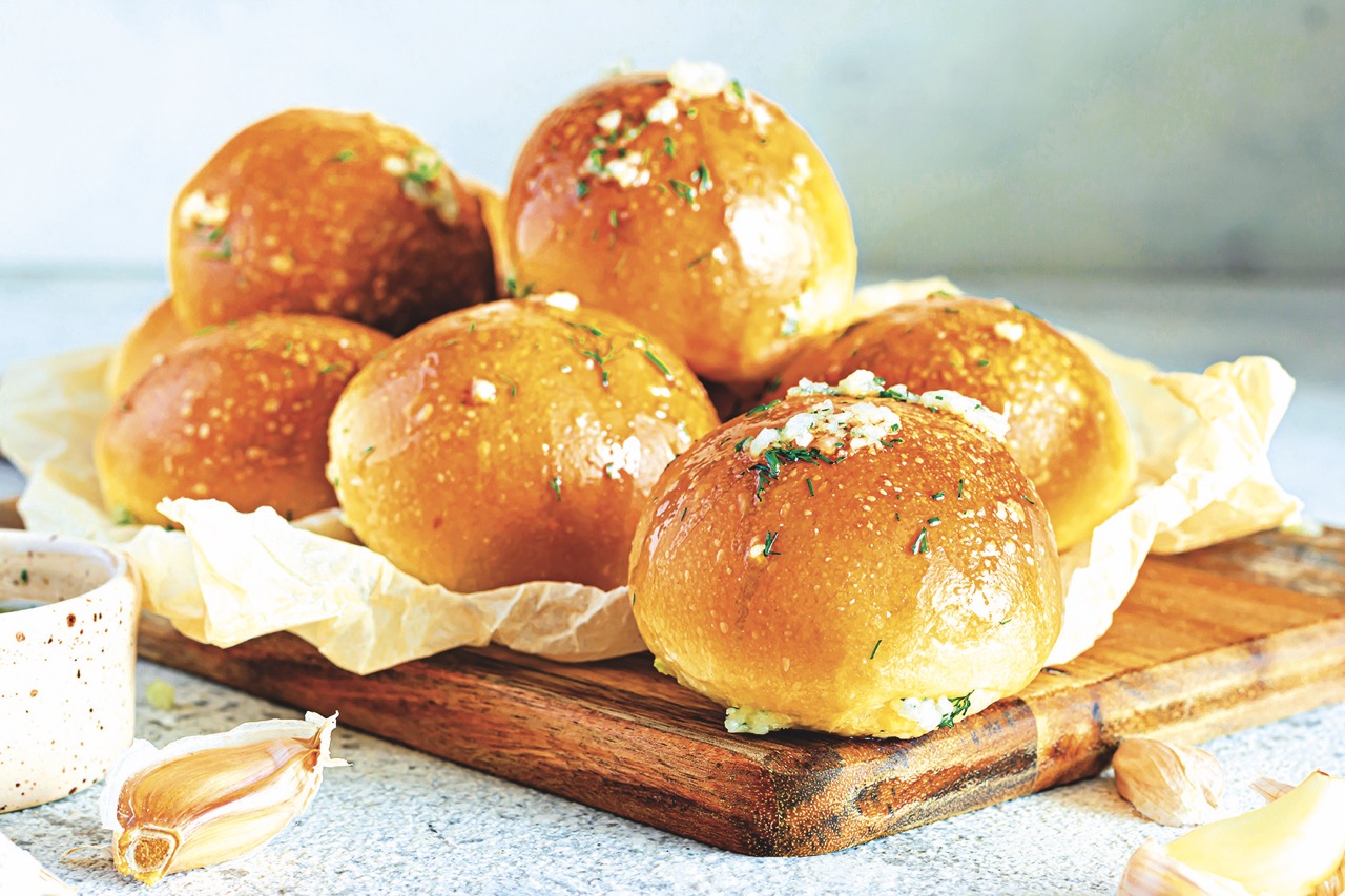 Měkké a vláčné bulky s jemnou česnekovou vůní se hodí přikusovat třeba k sýrům na prkénku, až budete mít mlsnou návštěvu.