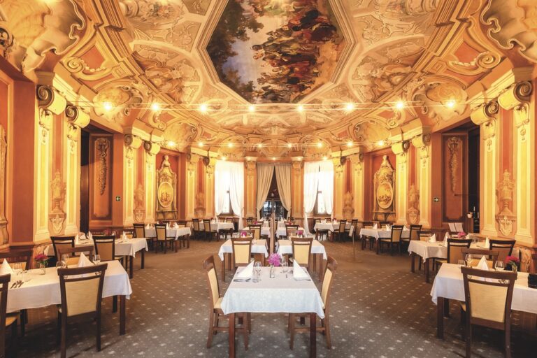 Ta láká kromě vybrané kuchyně na posezení u hřejivého krbu se sklenkou výborného vína. A je zde i venkovní vyžití. Můžete si udělat procházku po anglickém parku. Valentýnský balíček je k mání od 14. do 16. února 2026.