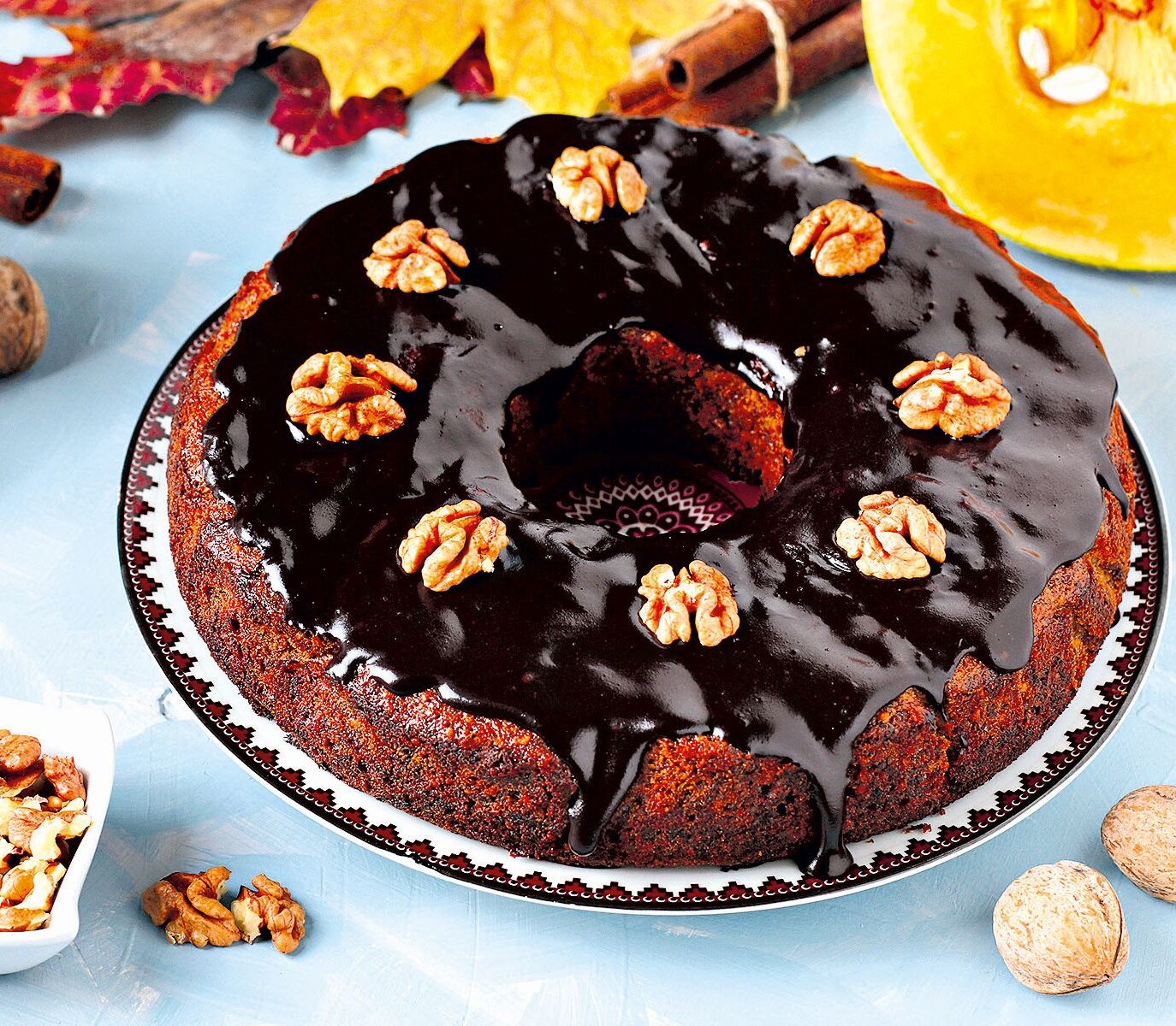 Moučník s dýní a čokoládovou polevou zachutná všem.