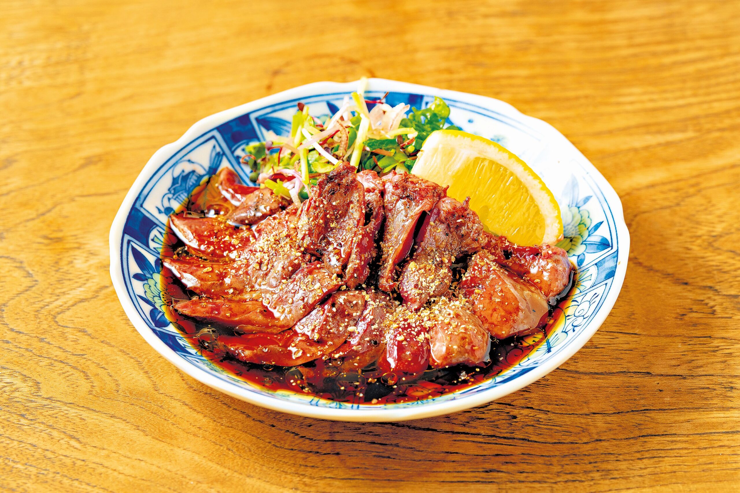 3. Plátky jater vyskládejte na talíře, zalijte zbylou omáčkou a posypejte sezamovými semínky. Podávejte s nakrájenou natí jarní cibulky, bambusovými výhonky a kouskem citronu, jímž vše zakápnete.