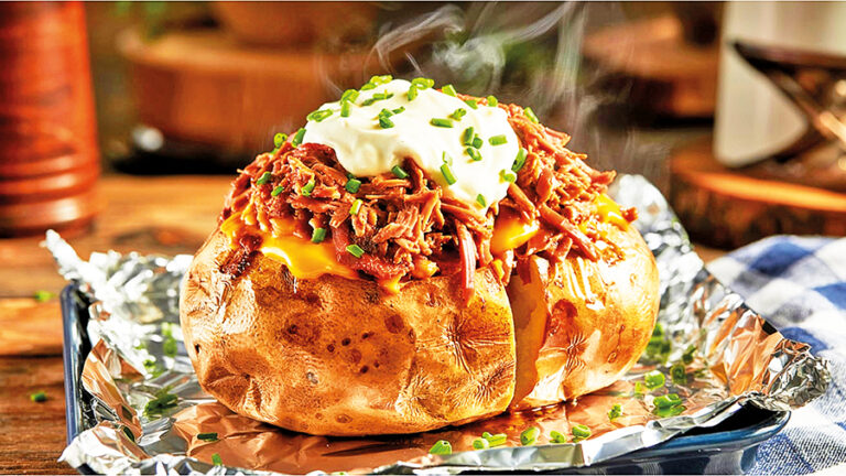 Můžete ji jíst jen tak. Ale hodí se také k zeleninovému salátku. Ingredience: 4 velké brambory 2 kuřecí prsa 1 cibule 2 stroužky česneku 150 g čedaru sůl, pepř olivový olej Na dip: 200 g hustého bílého jogurtu  2 stroužky česneku šťáva z ½ citronu sůl, pepř čerstvá pažitka na posypání Postup: Brambory omyjte, osušte, […]