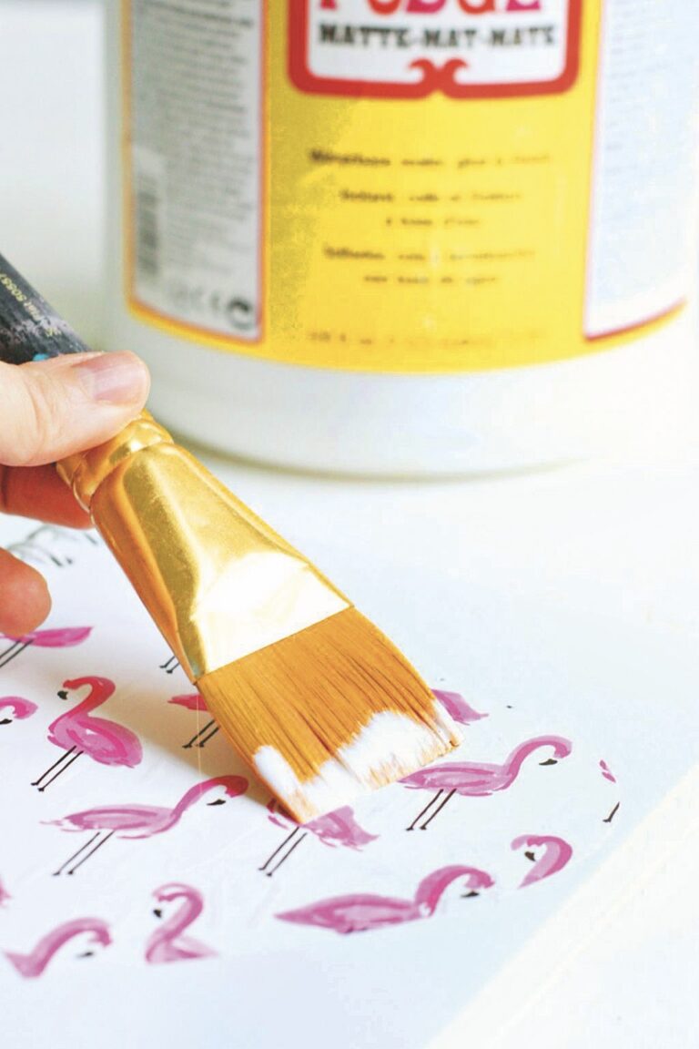 Dostatečně ostrými nůžkami z ní vystřihněte o centimetr větší tvar, než má obálka zápisníku. Desky s ní obalte, u hřbetu nastřihněte do véčka a přebývající konce přehněte přes okraje a přilepte.
