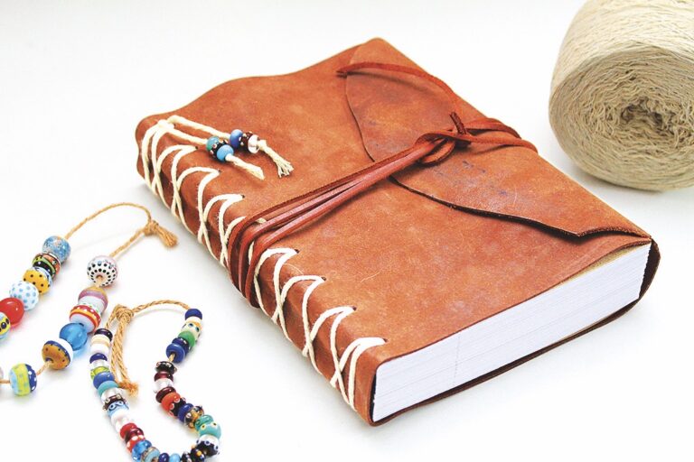 Obal oblepíte kouskem kůže, prostříháte dirky a provlečete jimi provázek. Jeho konce necháte volně a dozdobíte je korálky. Doplnit ho můžete ještě stylovými náramky.