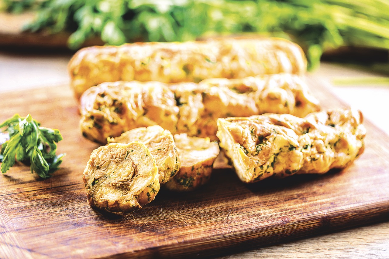 Uvařené knedlíky zchlaďte pod studenou vodou. Odřízněte jeden konec fólie a vytlačte je ven. Nakrájejte nejlépe nití na kolečka a rovnou podávejte.