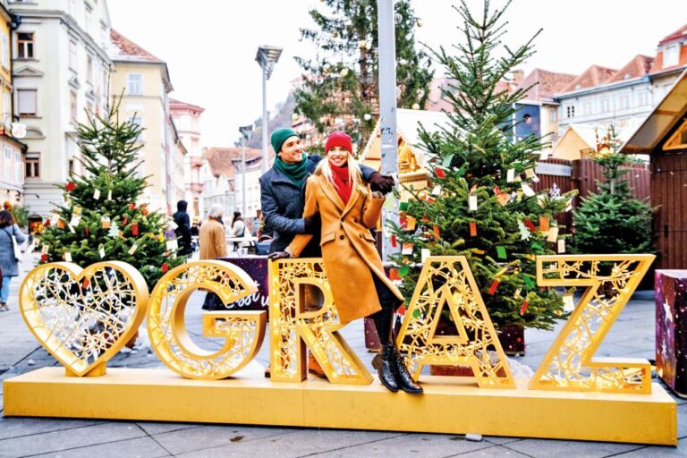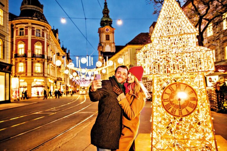 Celé město se promění v jeviště slavnostních okamžiků. Všude lákájí selfie-spoty na vzpomínkové fotografie – například u osvětleného nápisu „I Love Graz“ na náměstí nebo pod zářící hvězdou na náměstí Karmeliterplatz.