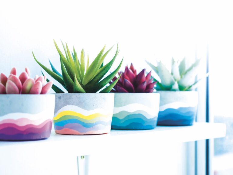 Máte doma fádní kameninové květináče věčně zastrčené ve skříni, protože moc parády nenadělají? Stačí pár tahů štětcem, a vytvoříte z nich chloubu domácnosti. Zkuste třeba tento duhový dekor.