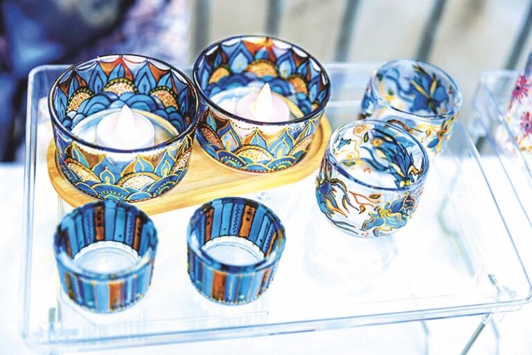 Už vás nebaví svícny z čirého skla? Sáhněte po vitrážových barvách, které budou ve světle svíčky nádherně zářit, když je nanesete na průhledný podklad. Zkusit můžete i jen docela jednoduché proužky nebo jiné dekory symetričtějších tvarů.