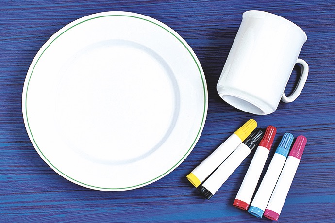 1) Že už vás bílé hrnky a talíře bez nápadu nudí? Neváhejte s tím něco udělat! Skvělé je to, že jsou k sehnání i speciální barvy na porcelán v podobě silných fixů.