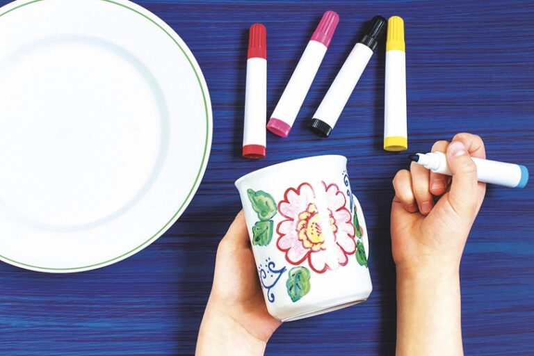 2) Před aplikací očistěte povrch, který chcete pomalovat. Fixy protřepejte a nanášejte na vybrané místo. Výtvor nechte po dobu čtyř hodin zaschnout a poté přistupte k dalšímu kroku – vložte nádobí do studené elektrické trouby.