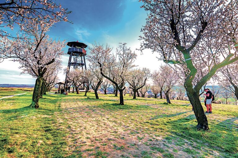 Nabízejí jedinečný zážitek, který v Česku nemá obdoby. Jde o největší mandloňové sady ve střední Evropě. Uprostřed téhle krásy stojí 17 metrů vysoká dřevěná rozhledna, která skýtá ty nejromantičtější výhledy do okolí.