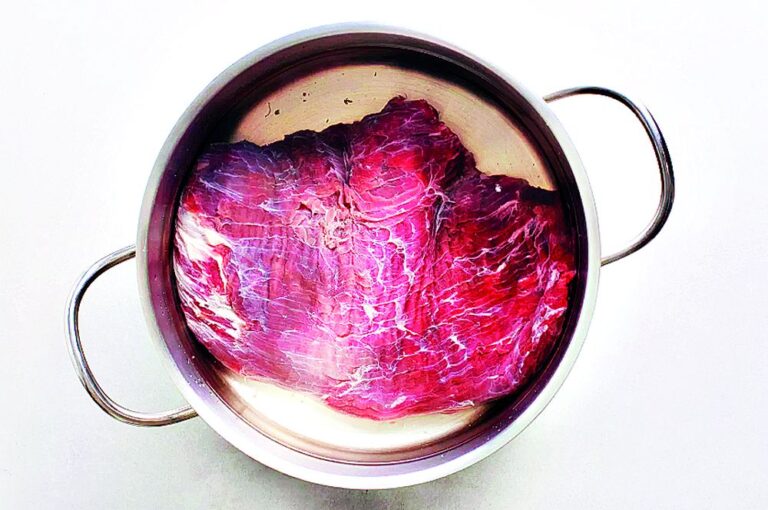 1. Nejprve si připravte maso, ideální bude hovězí kližka. Maso vložte do velkého hrnce se silným dnem a zalijte ho vodou tak, aby bylo zcela ponořené. Na středním plameni ho pod pokličkou duste asi 2 hodiny, dokud nebude zcela měkké.
