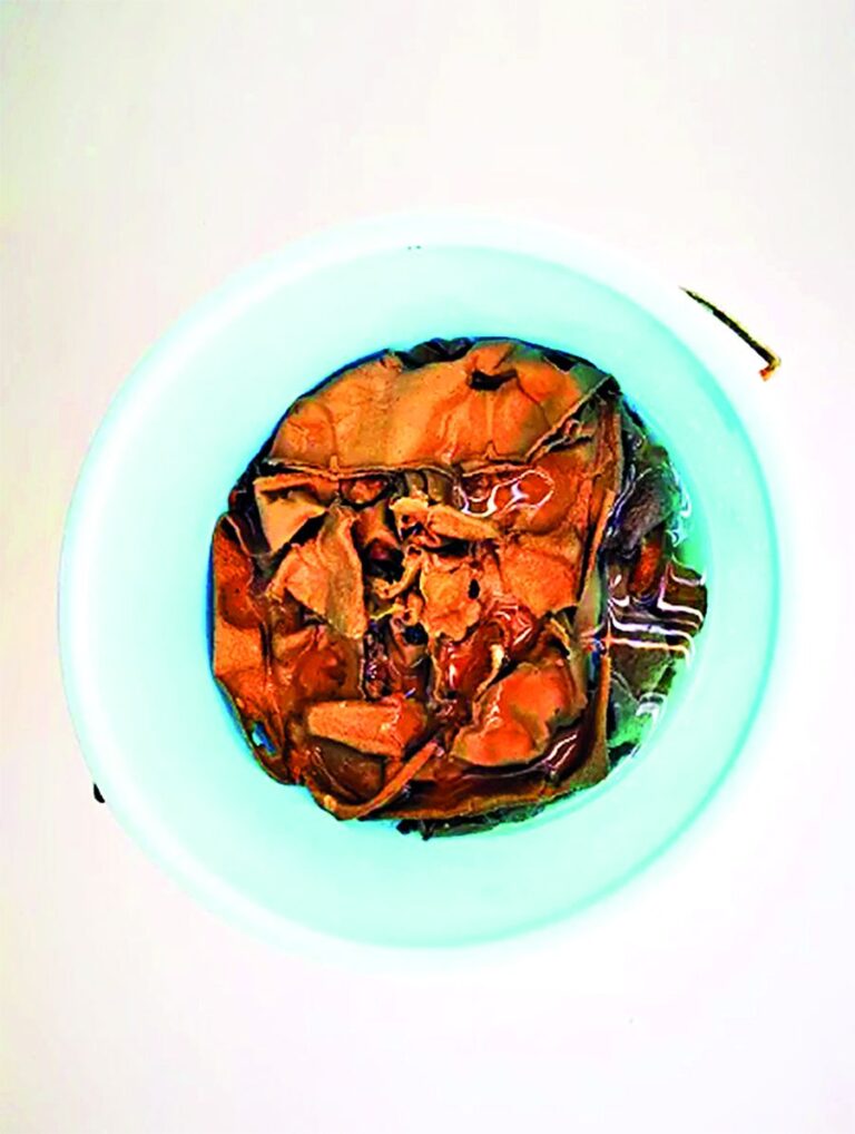 1. Plata od vajec natrhejte na drobné kousky a ty zalijte v kyblíku studenou vodou. Nechte je přes noc nasáknout vodou a vzniklou kaši druhý den rozmixujte ponorným mixérem.