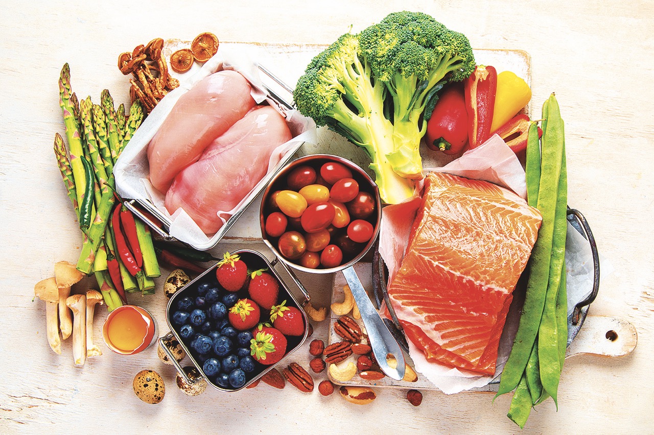 Ryby, kuřecí maso, vejce a luštěniny podporují svaly a pocit sytosti, zatímco zelenina, ovoce a celozrnné produkty zajišťují správné trávení a stabilizují hladinu cukru v krvi.