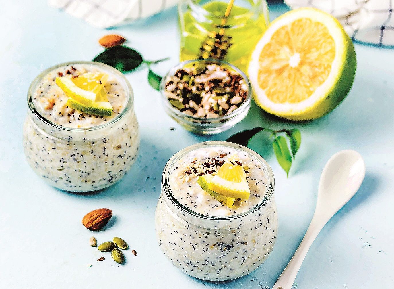 3. Jogurt nechte několik hodin, ideálně přes noc, odležet v lednici, aby mák i ovesné vločky trochu změkly. Poté již můžete servírovat. Před podáváním ozdobte plátkem citronu. Přidat můžete i čerstvé ovoce (maliny, borůvky apod.).