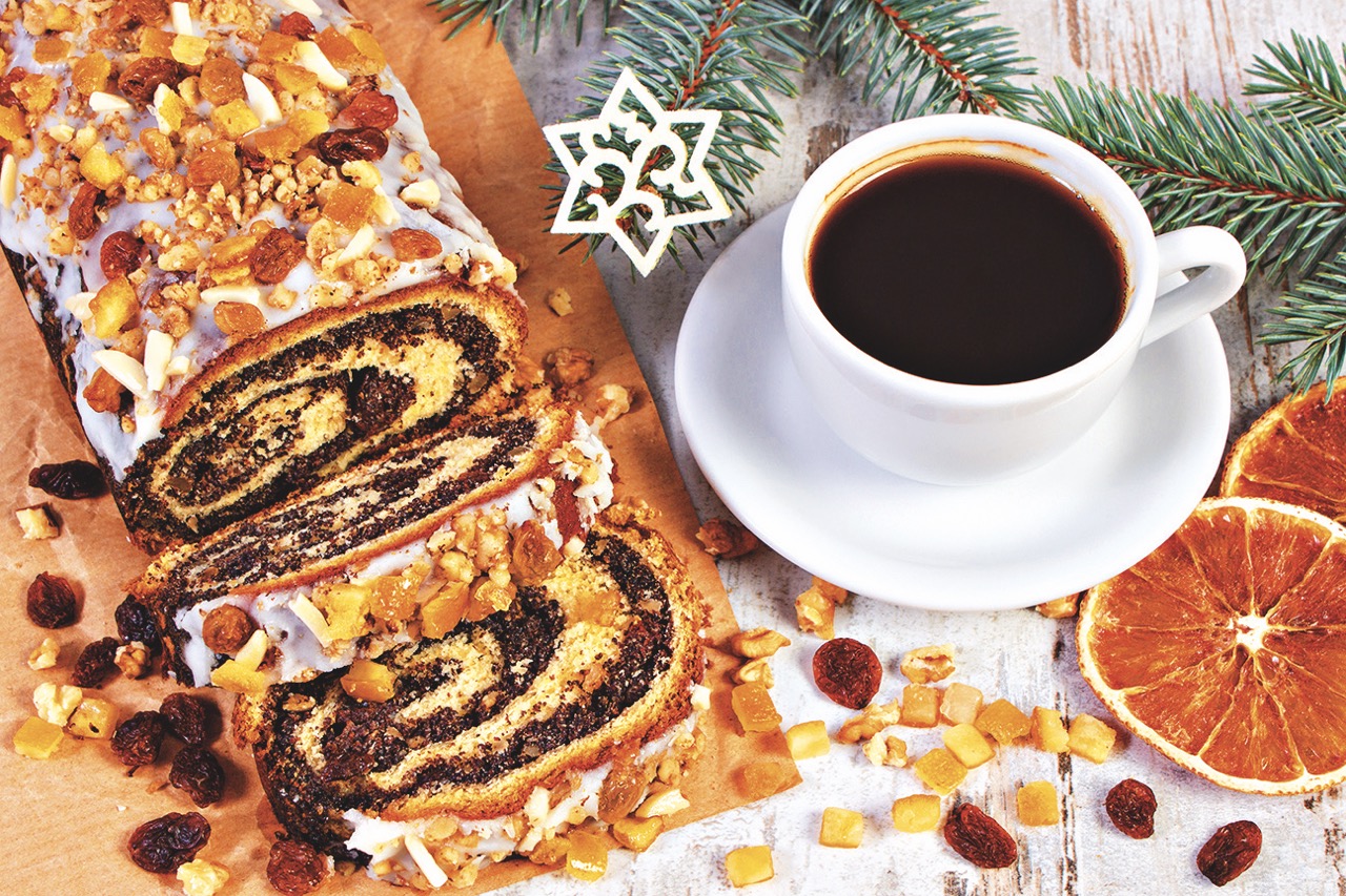 Hotové těsto rozdělte na dva díly. Každý vyválejte do tvaru obdélníku. Potřete je makovou náplní a zatočte. Okraje těsta k sobě pevně na krajích přimáčkněte, aby se náplň při pečení neuvolnila.