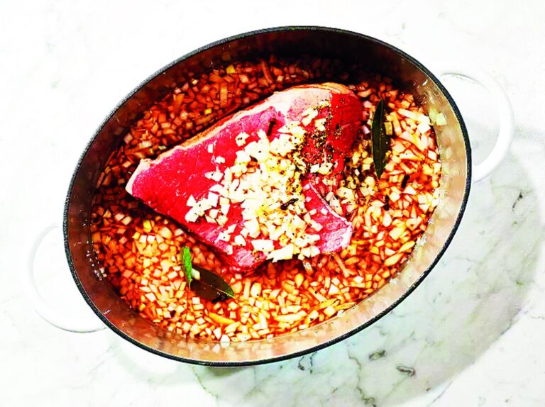 Technologie v kuchyni mě vždy fascinovala a tyhle tradiční německé pokrmy, jako je marinovaná hovězí pečeně, jsou pro mě jako technologický postup skrz naskrz. Kdo by to řekl, že ocet dokáže s masem takové divy!