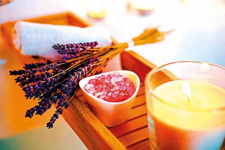 V misce smíchejte růžovou sůl, levandulový olej a sušenou šalvěj a představujte si, jak od vás odchází vše, co vás tíží. Směs nasypejte do teplé vany, ponořte se a řekněte si: „Očišťuji se.