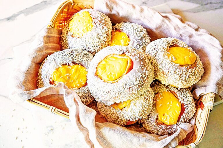 Nadýchané kynuté těsto skrývá jemnou vanilkovou náplň a povrch je pokryt vrstvou cukrové polevy a strouhaným kokosem.