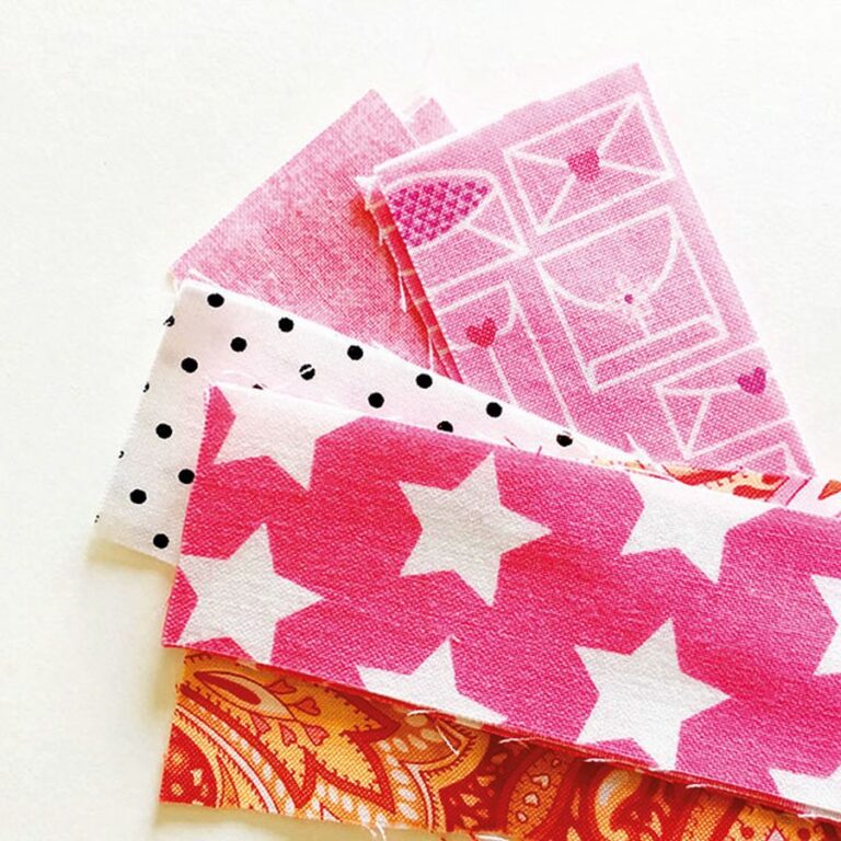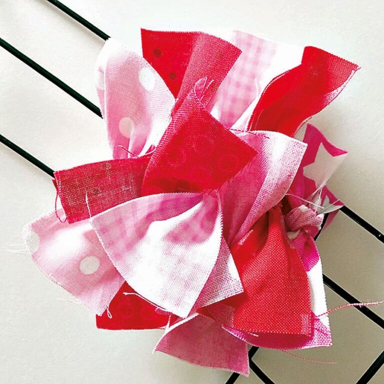 1. Připravte si několik druhů bavlněných látek v červené nebo růžové barvě. Nůžkami je nastříhejte na stejně široké pruhy. Rozdělte je podle barev a pusťte se do zaplétání.