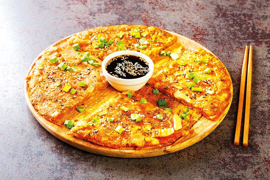S opečenou cibulkou a sójovou omáčkou vám budou palačinky určitě chutnat.
