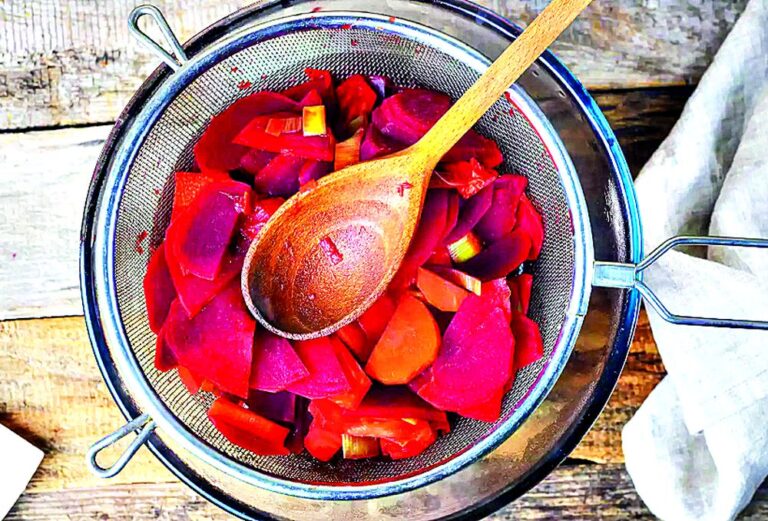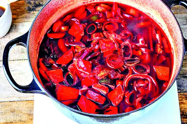 Poté ho přeceďte a dochuťte ho solí, cukrem a citronovou šťávou tak, aby byl sladkokyselý. Nechte ho na nízkém plameni prohřívat, ale už ho nevařte, ztratil by pak svou sytou barvu.