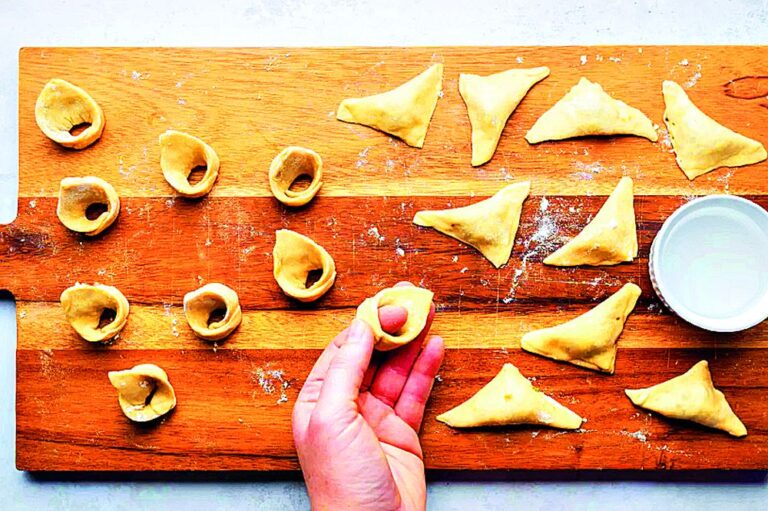 Pomocí sklenice z něj vykrajujte kolečka a do každého z nich vložte lžičku náplně. Okraje pečlivě stlačte, aby se pirohy při vaření nerozlepily.