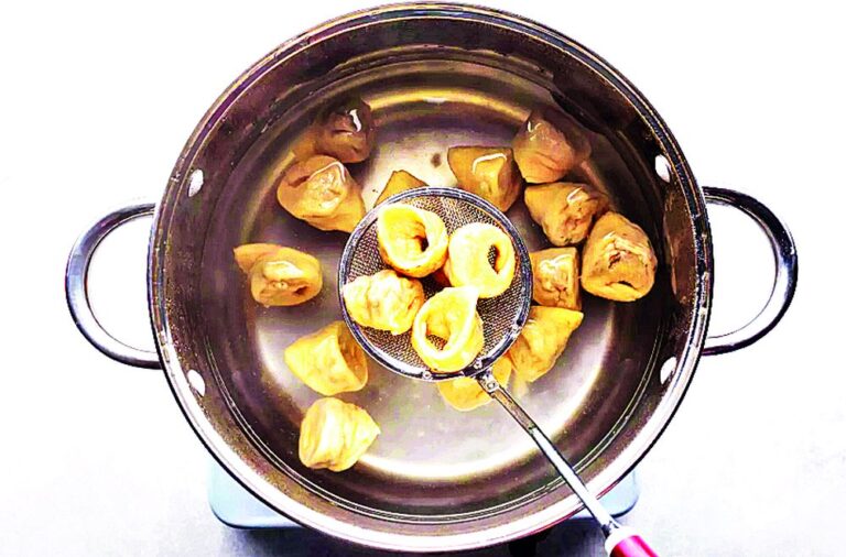 5. Pirohy vařte v osolené vodě, dokud nevyplavou na povrch. Poté je přeceďte a potřete rozpuštěným máslem, aby se k sobě nepřilepily. Ujistěte se, že vývar v hrnci je dostatečně horký, a pokud je potřeba, ještě ho trochu ochuťte.