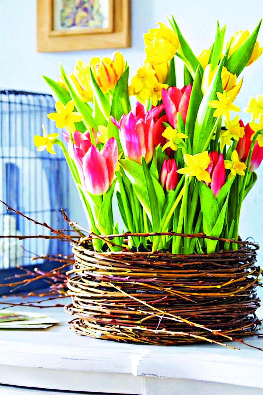 3. Připravte si umělé květiny. Na jarní dekoraci se nejlépe hodí tulipány nebo narcisky, výběr je ale jen a jen na vás.